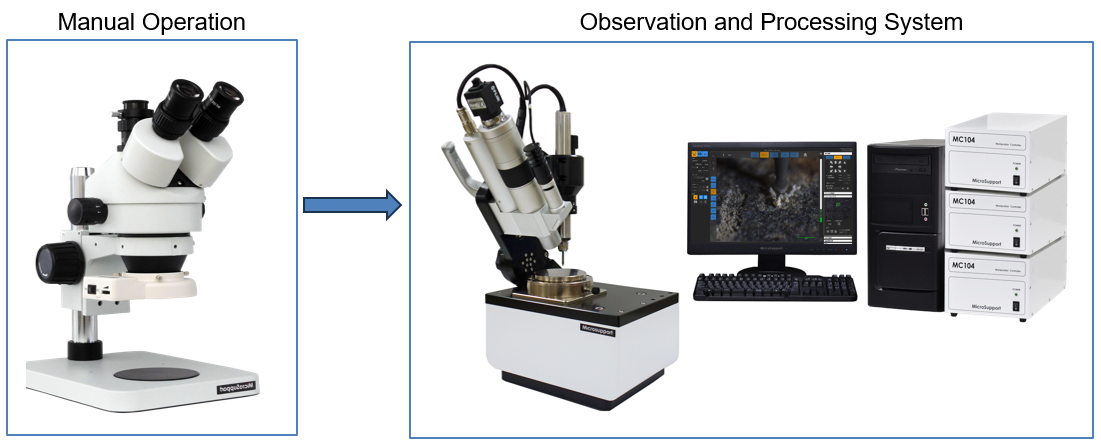 The AxisPro system enables precise handling and sampling of microscopic objects for analytical processing. Most importantly, selecting the most appropriate tool that suits the material condition and shape of the target sample is essential.