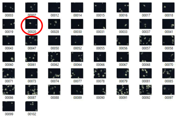 撮影後のフォルダ内にて画像を順次確認することで対象の粒子や部位を見つけることができます。